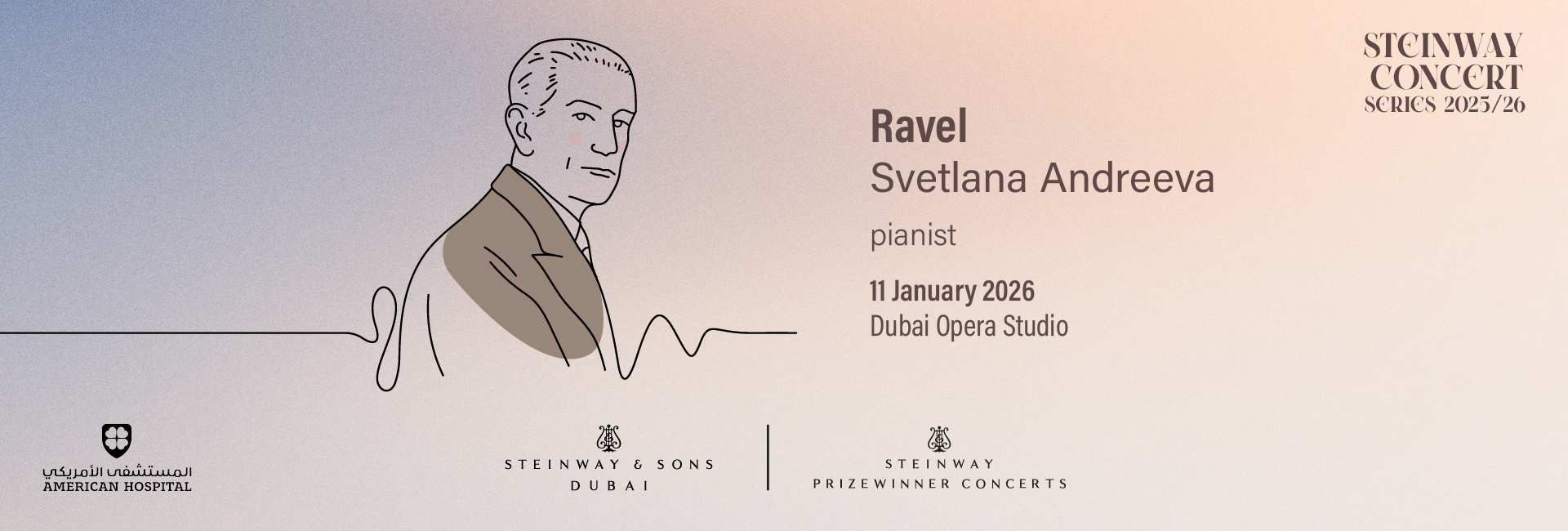 For her Dubai debut, Andreeva turns to the luminous world of the composer, performing Le tombeau de Couperin (The Tomb of Couperin), Mirors (Mirrors) and Pavane pour une infante défunte (Pavane for a Dead Princess) masterworks revered for their elegance, delicacy, and emotional restraint.